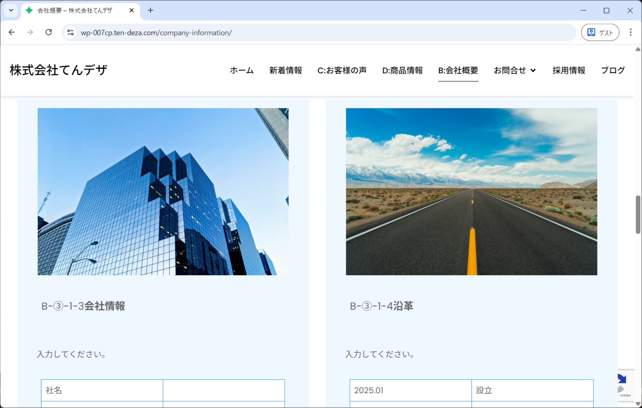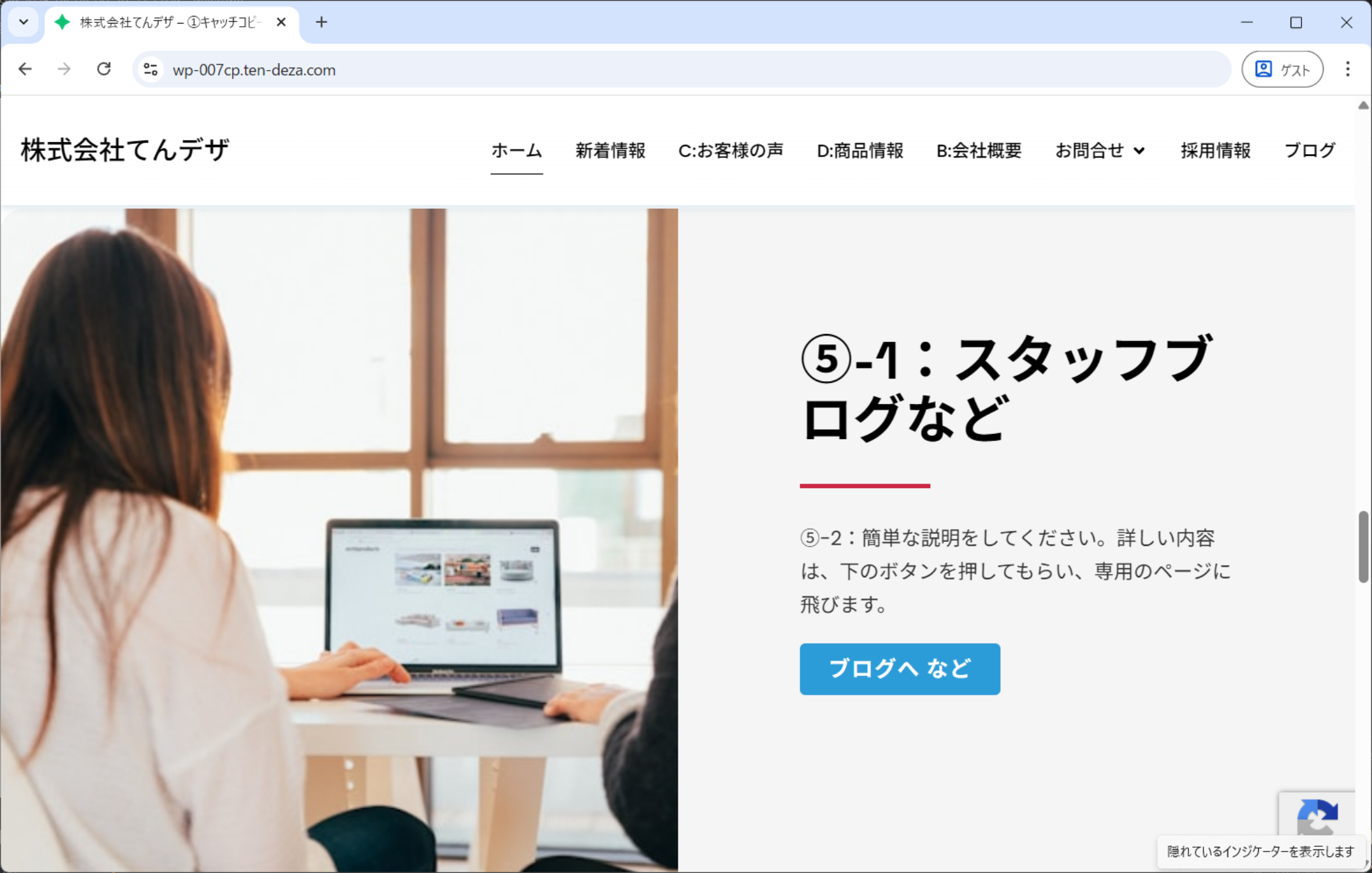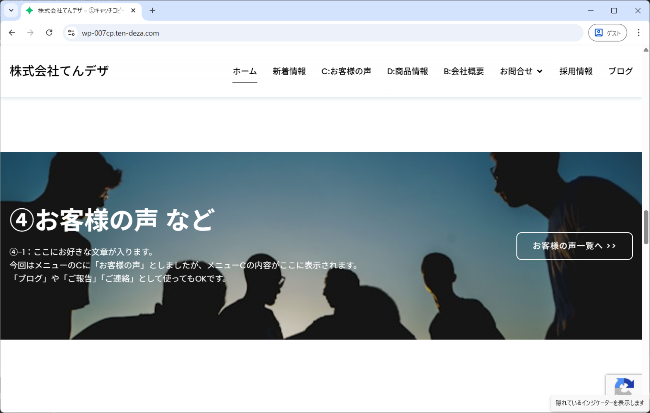 ④完成ホームページの、動作や内容の確認をお願いします。