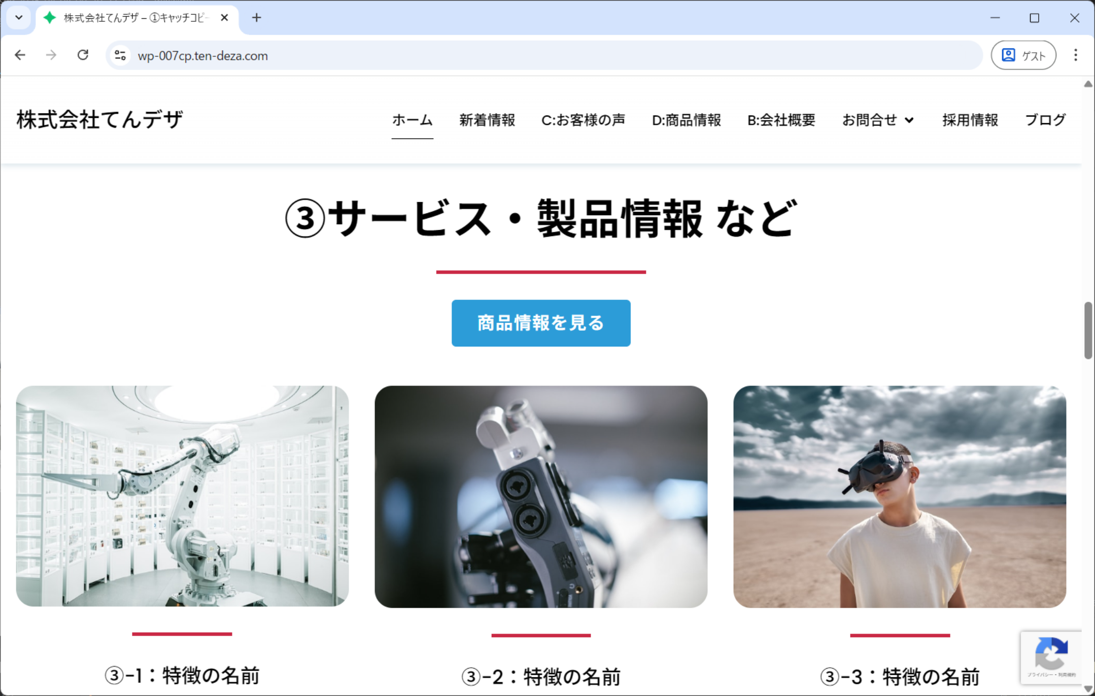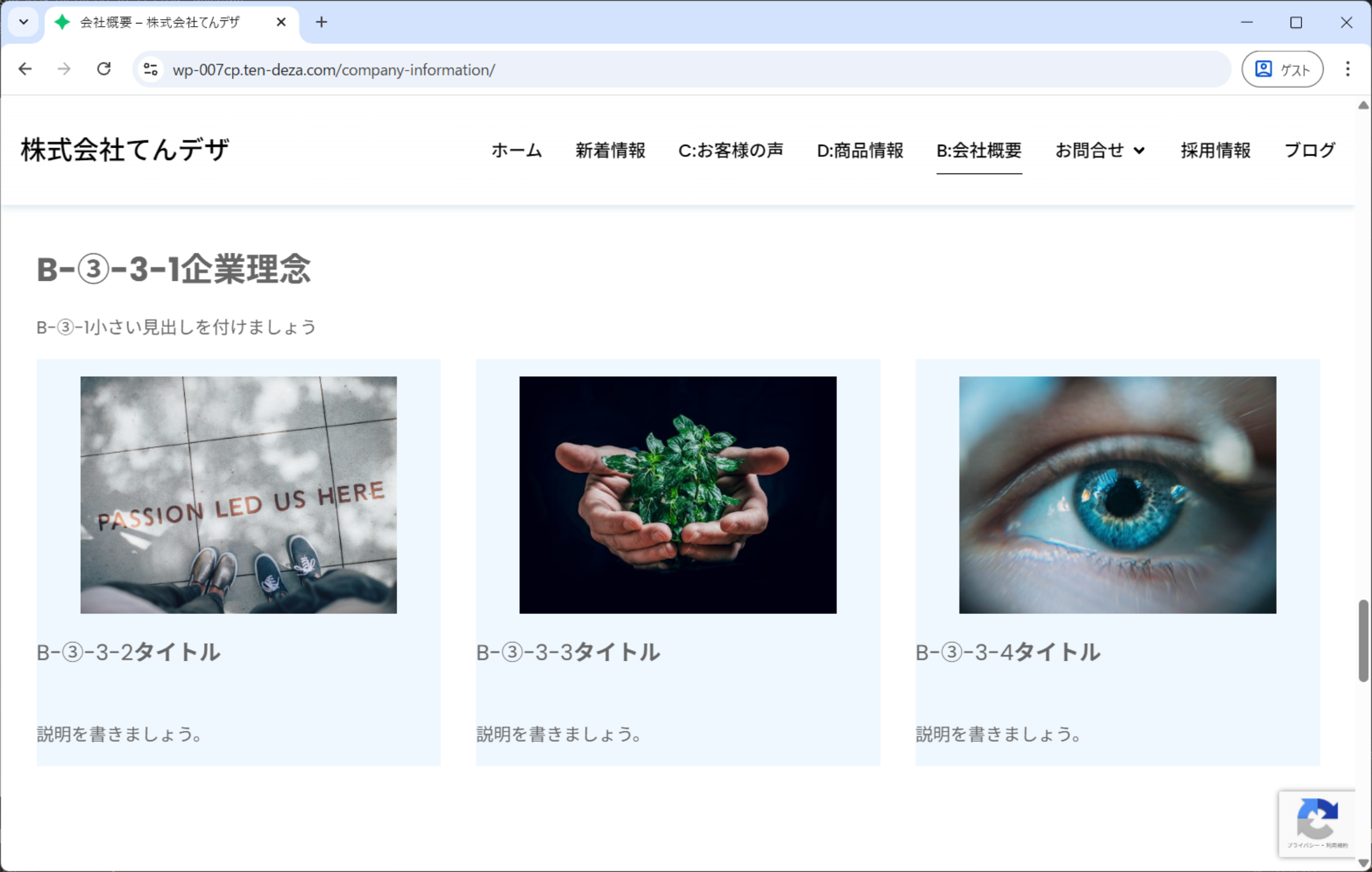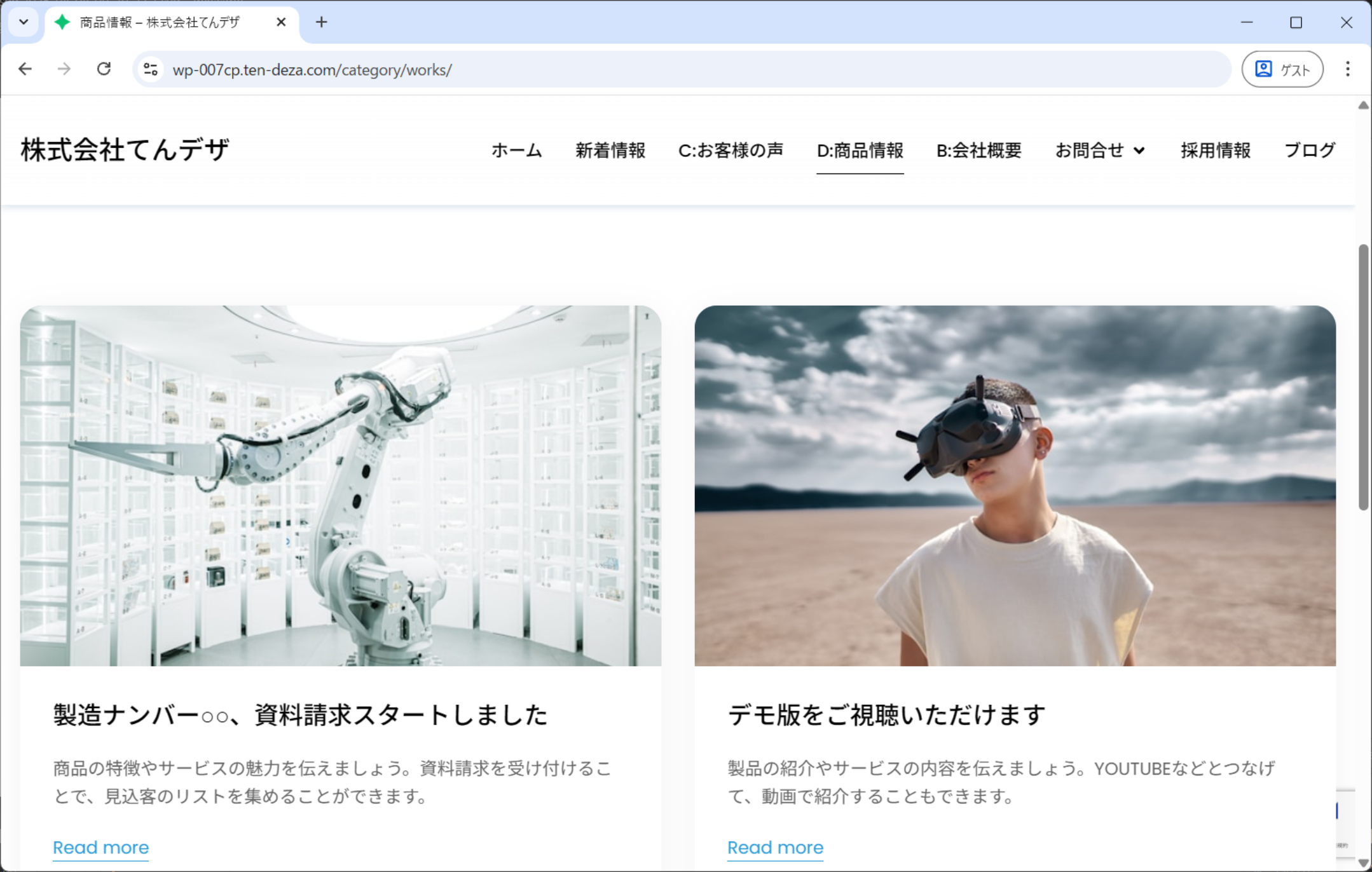 ④完成ホームページの、動作や内容の確認をお願いします。